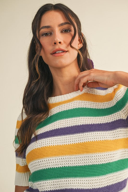 Mardi Gras Striped Sweater Top