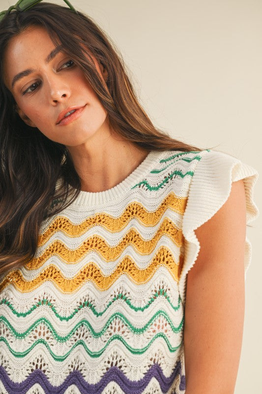 Mardi Gras Ruffle Sleeve Sweater Top