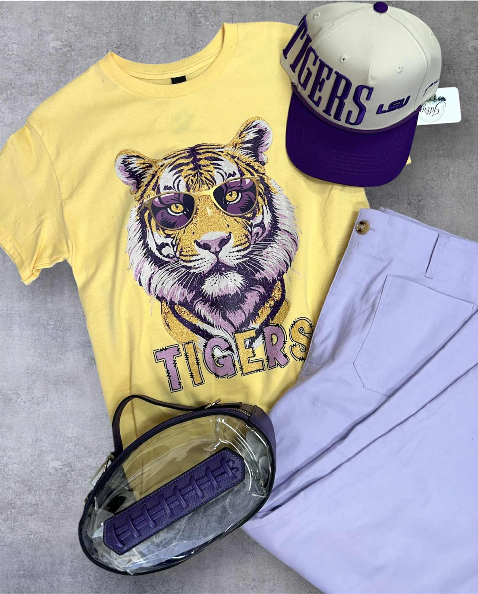 Ankle cropped lavender pants. Stretchy fabric. Pockets.
