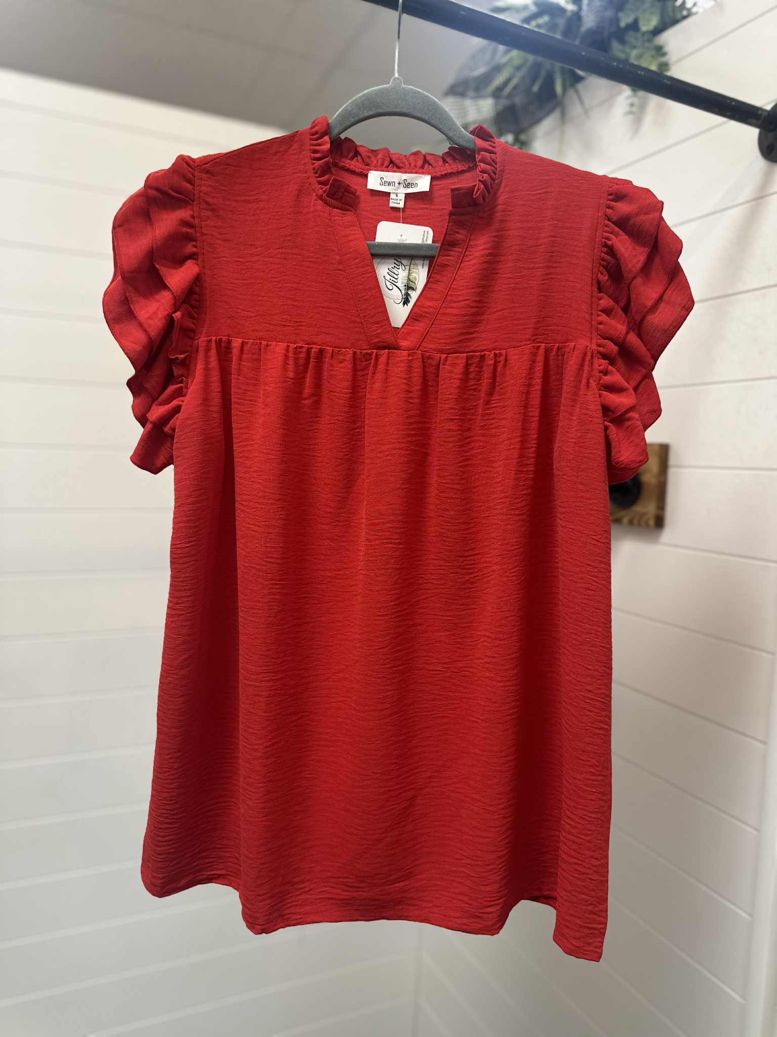 Red Ruffle Sleeve Top